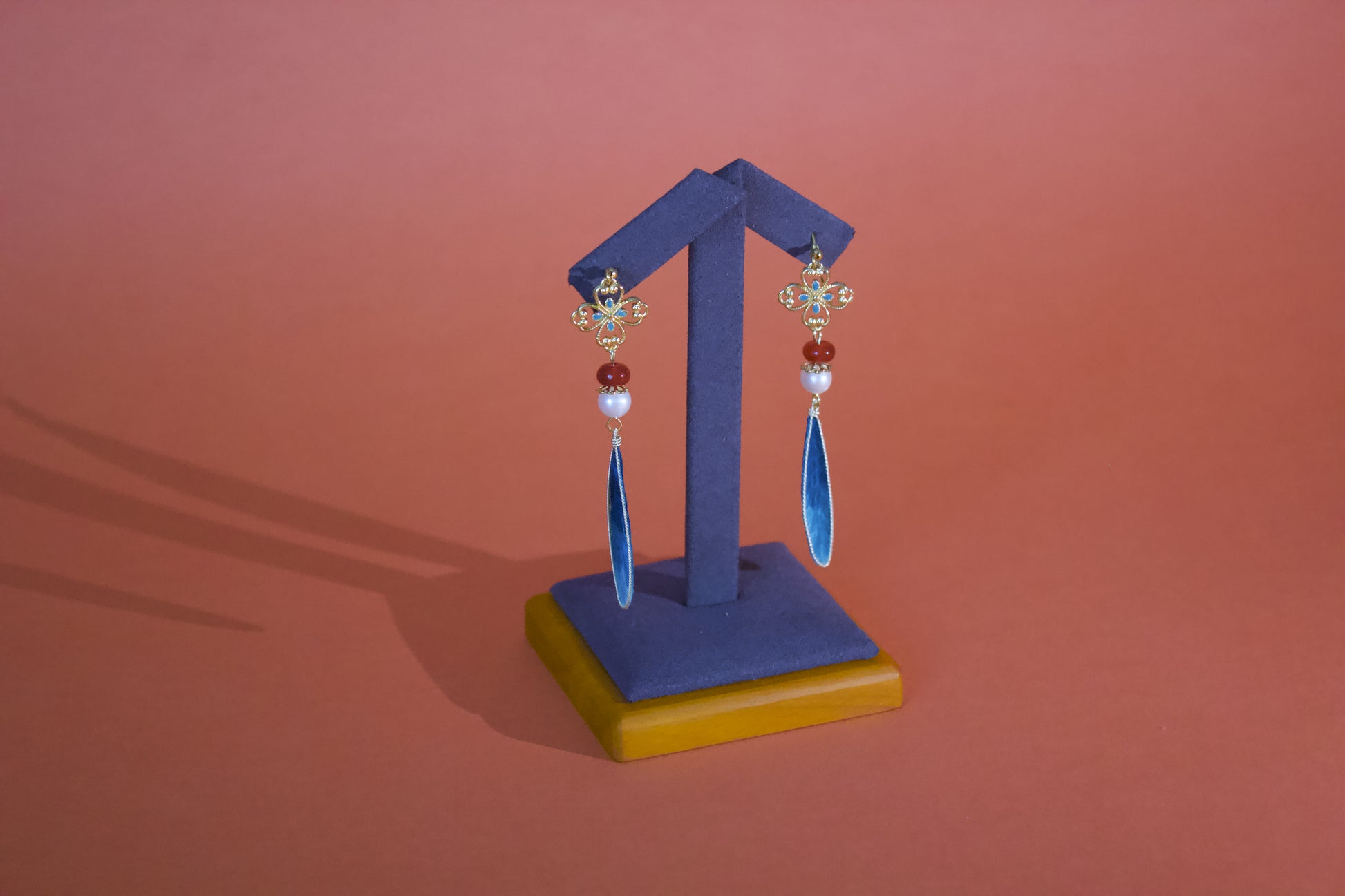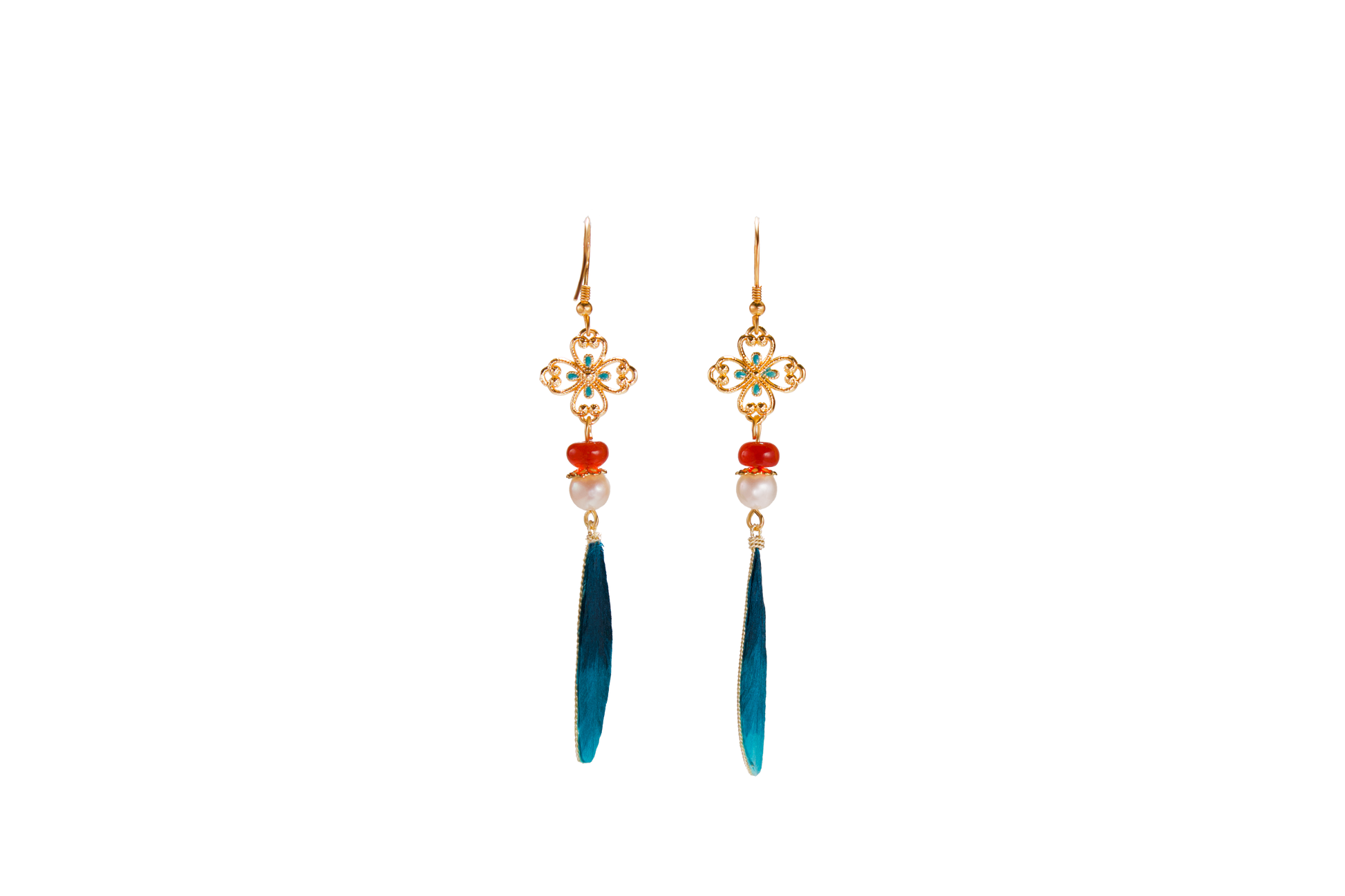 Lanyu – Handmade Velvet Flower with Agate & Pearl Earrings