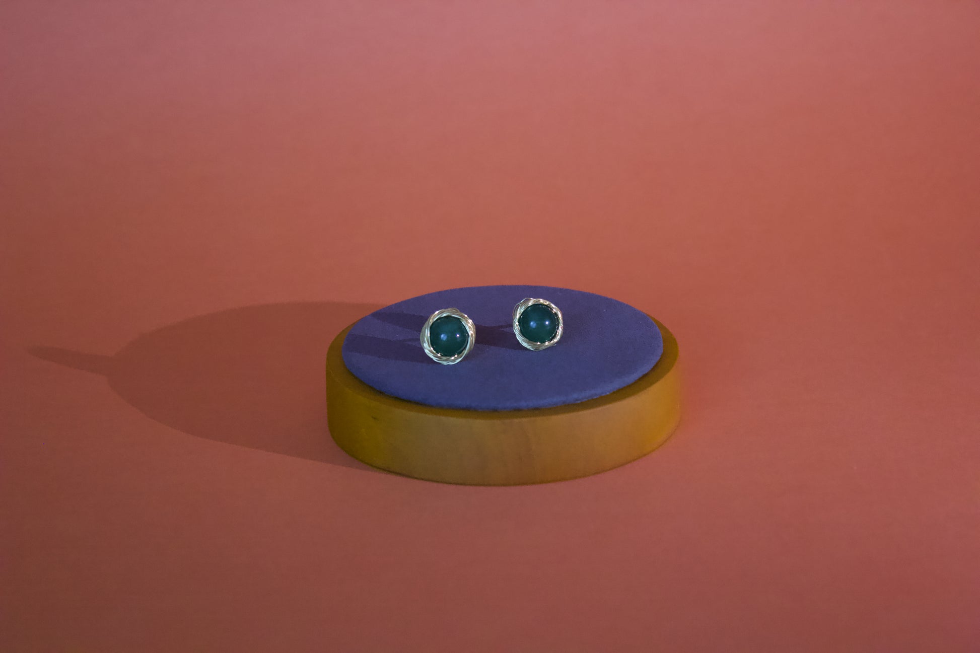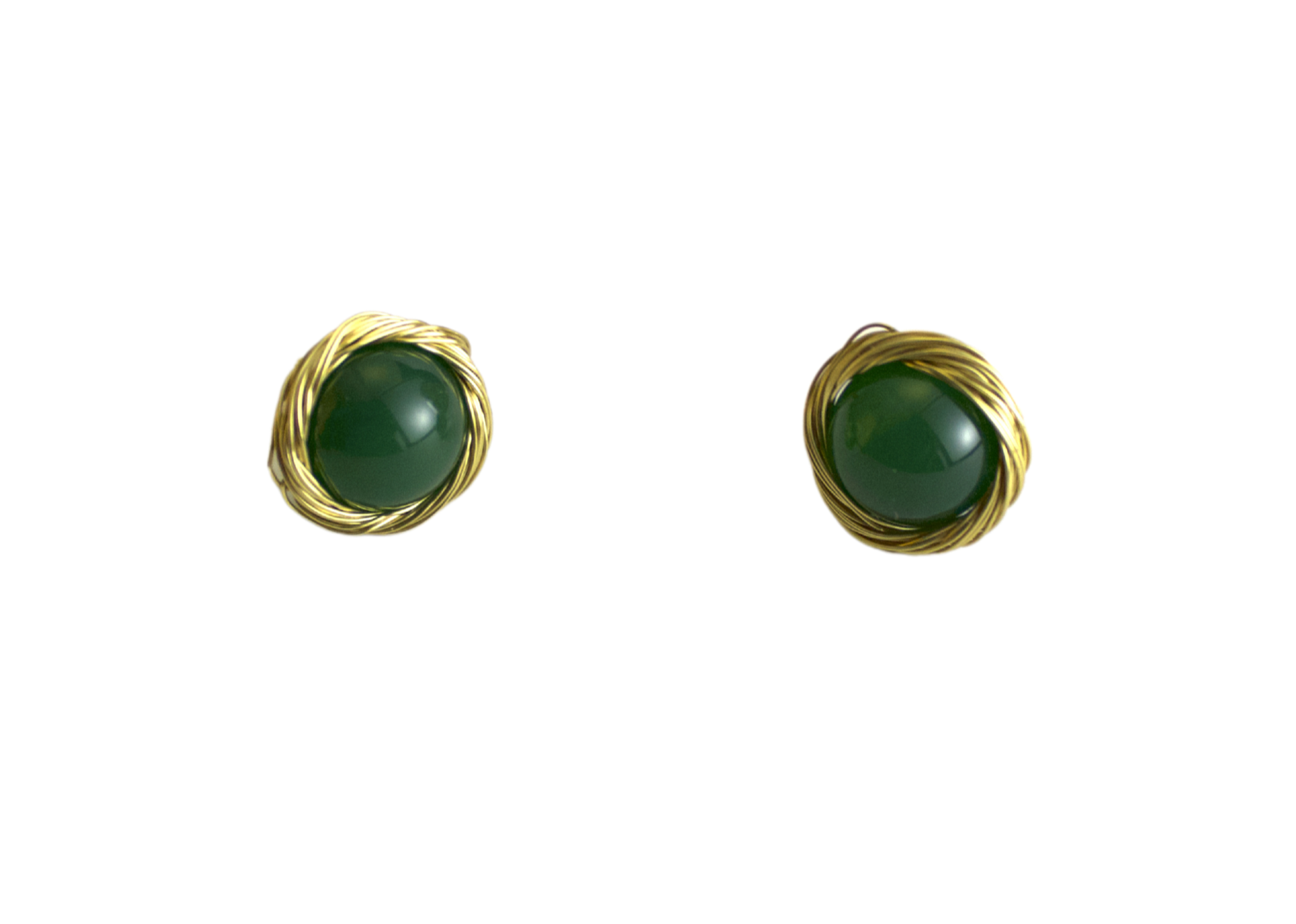 Green agate stands for balance and good fortune. Paired with golden loops, it embodies “green protected by gold,” a symbol of care, serenity, and grace.