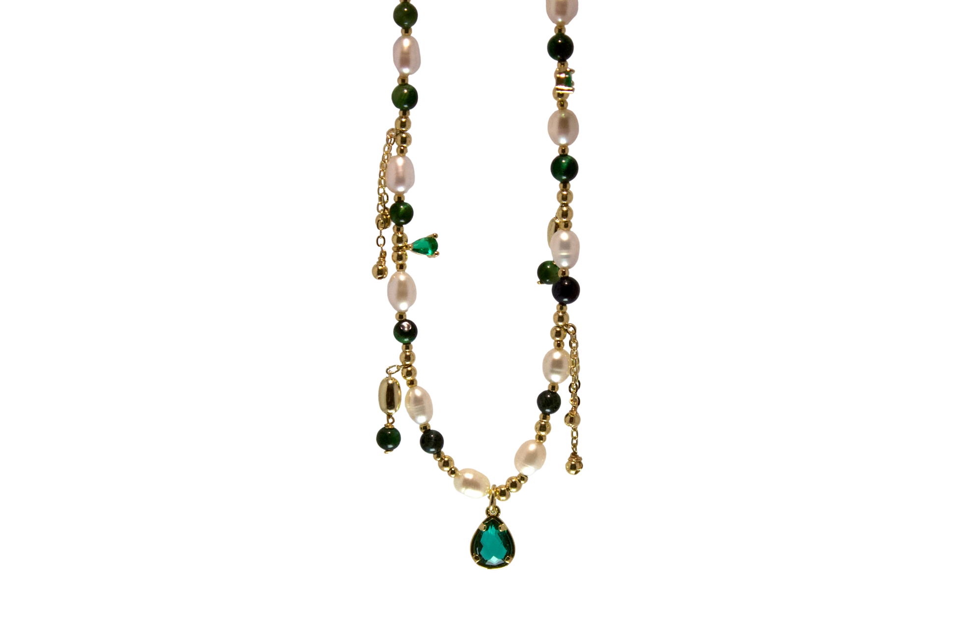 Verdelia – Green Tiger Eye & Pearl Necklace